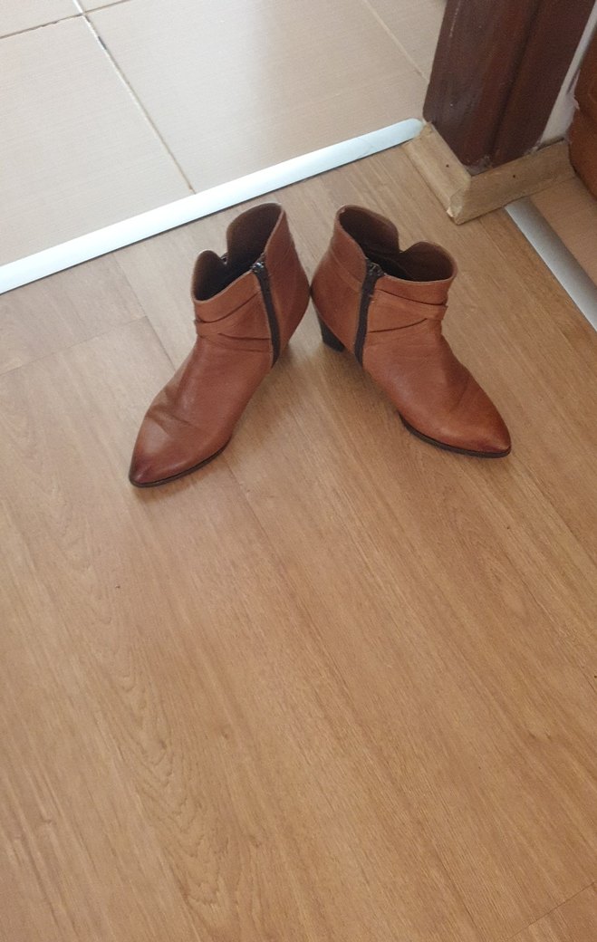 Koyu kahverengi deri kadın botlar, dolgu topuklu ve tokalı detaylara sahiptir. Yan fermuarı ve sade tasarımıyla günlük kullanıma uygundur.