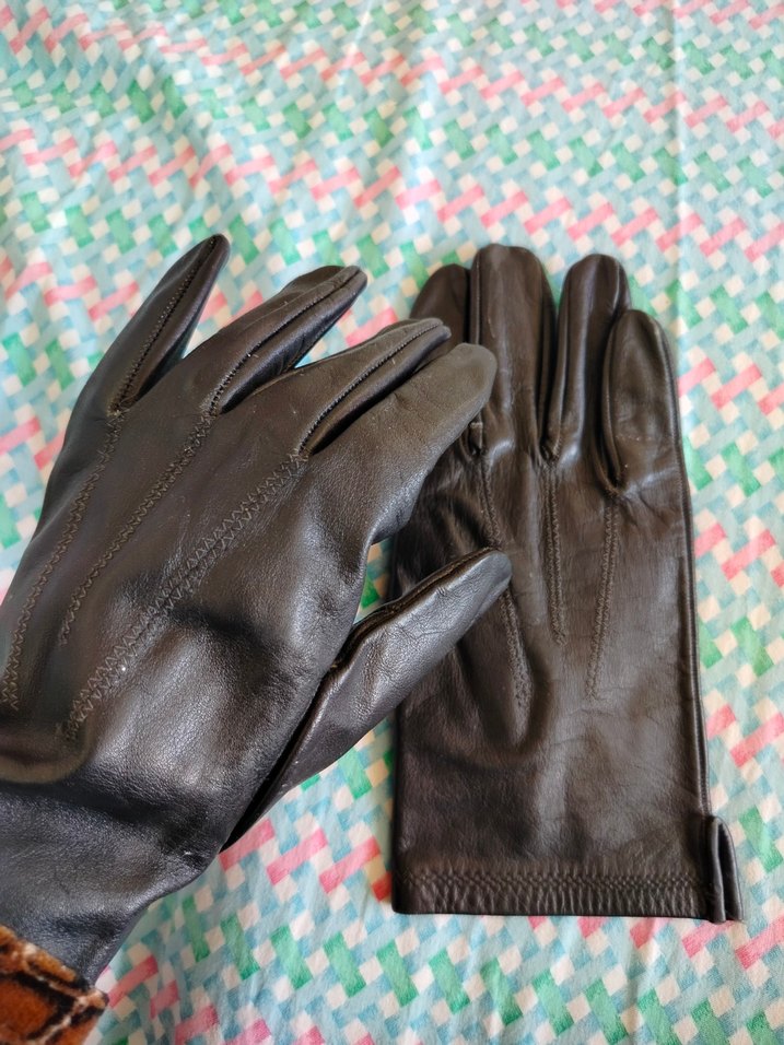 Kahverengi deri, fermuarlı kadın eldivenleri, vintage ve karşı kültür tarzını yansıtıyor.