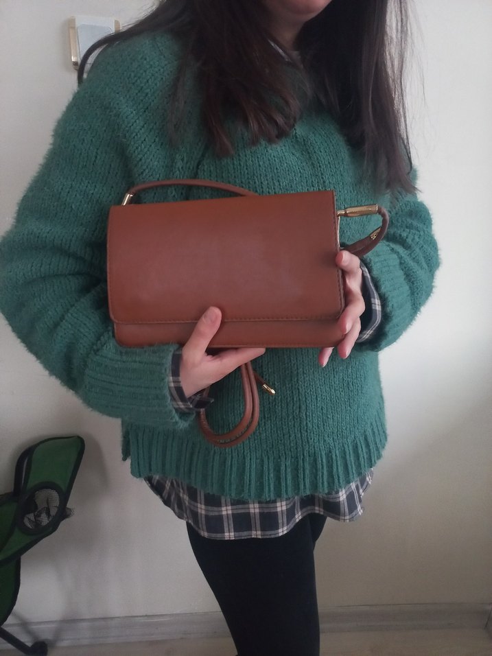 Kahverengi deri, tokalı kapaklı kadın çantası hiç bir kusuru yoktur.