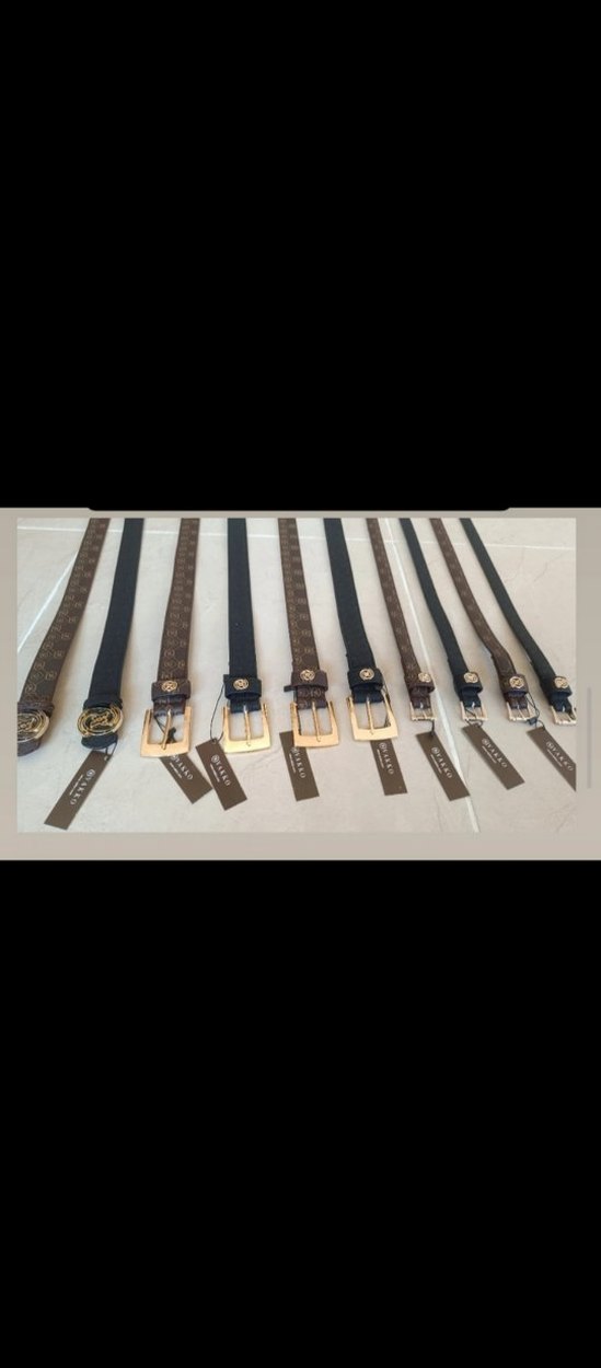 Koyu kahverengi deri kadın kemerler, altın rengi tokalarla. Klasik ve sokak modası stilinde, trend günlük kullanıma uygun.