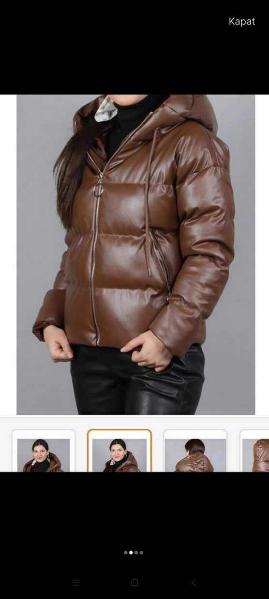 Kahverengi deri kadın kışlık mont, kemerli ve midi boyda, yüksek yakalı ve uzun kolludur. Düz desensiz yüzeyiyle trend sokak stiline uygundur.