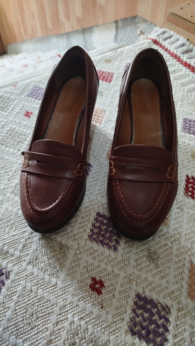 Kahverengi Deri Kadın Klasik Dolgu Topuklu Ayakkabı