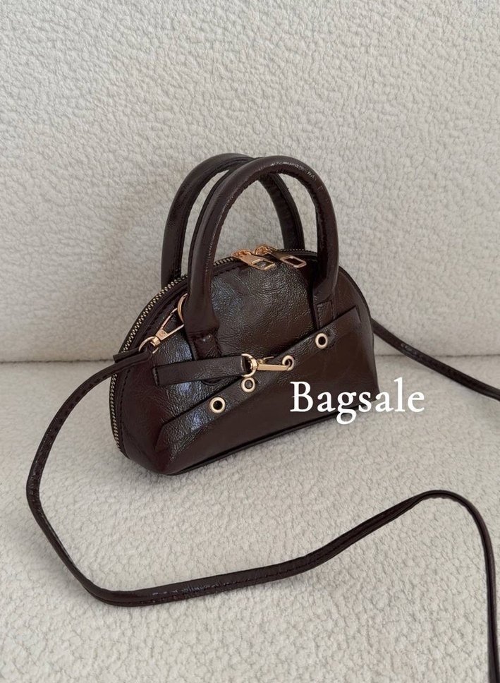 Kahverengi deri, tokalı detaylara sahip küçük boy kadın çantası. Uzun askısıyla farklı şekillerde taşınabilir, gündelik kullanıma uygundur.