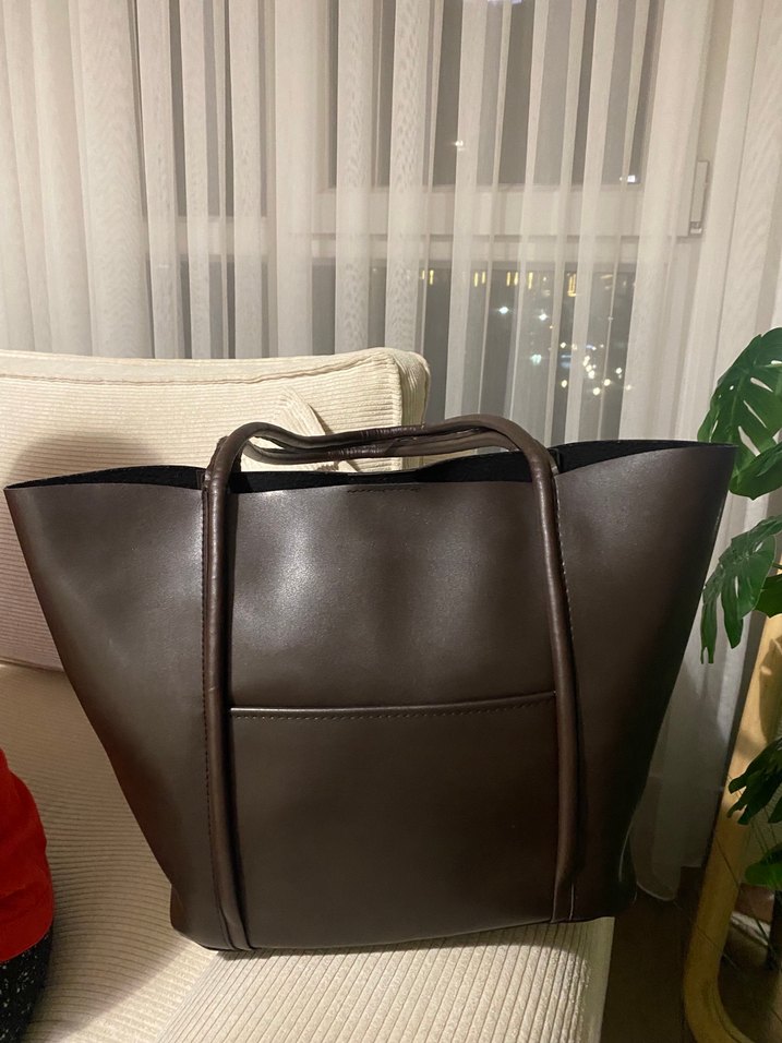 Kahverengi deri omuz çantası