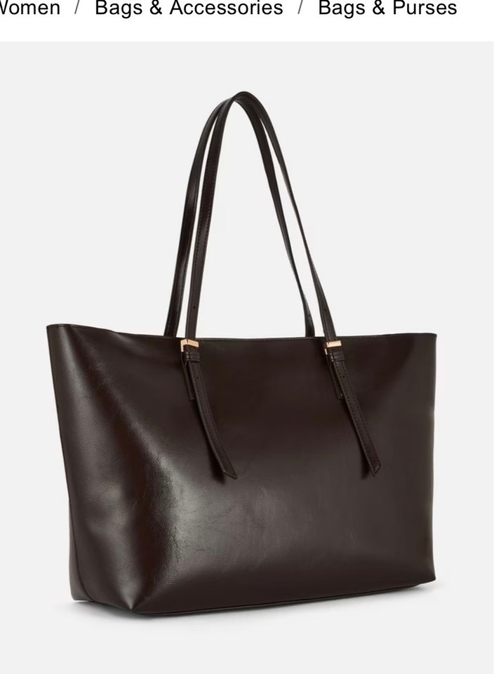 Koyu kahverengi deri malzemeden, kemerli detaylı minimal ve desensiz kadın omuz çantası. Klasik şıklık ve günlük kullanım için uygundur.