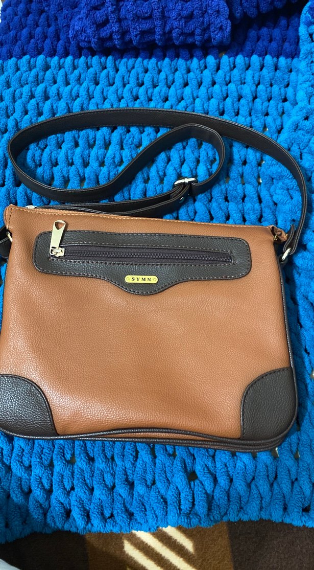Kahverengi deri, fermuarlı çok bölmeli, minimalist sokak stili kadın omuz çantası, günlük kullanım için uygundur. Eni 27 cm-yükseklik 21 cm