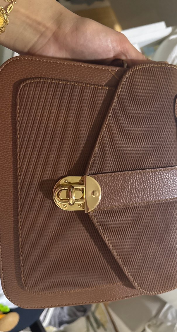 Parlak kahverengi deri, yılan derisi desenli, altın tokalı modern klasik kadın omuz çantası.