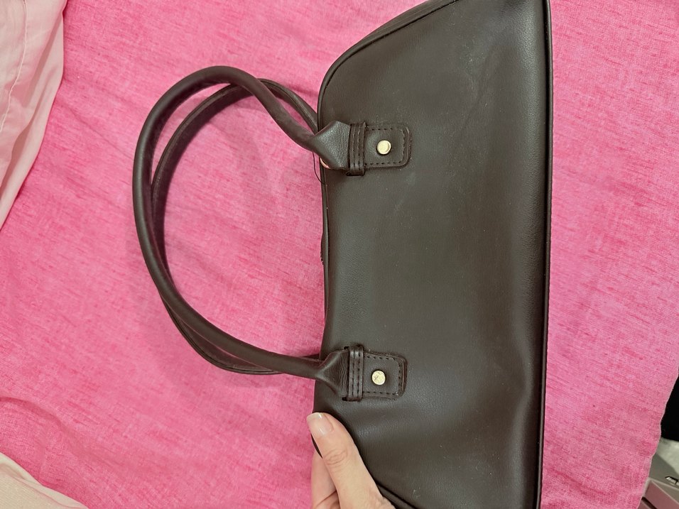 Kahverengi deri, tokalı kadın omuz çantası, günlük kullanım için uygun.