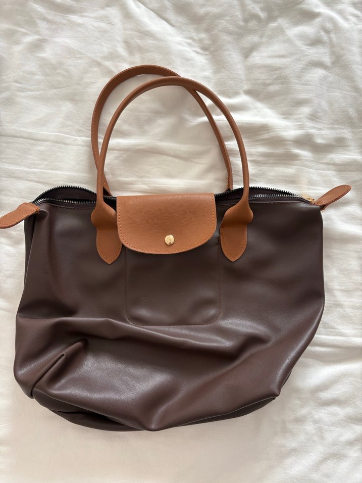 Kahverengi deri omuz askılı, tokalı, sade ve çağdaş Paris tarzı günlük kullanıma uygun kadın çantası.