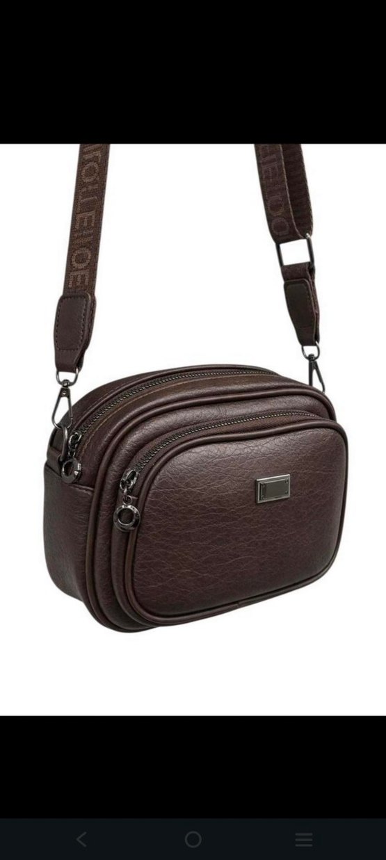 Kahverengi deri kadın omuz çantası, kemerli tasarımı ve çoklu fermuarlı bölmeleriyle modern klasik stile sahiptir. Günlük kullanıma uygundur.