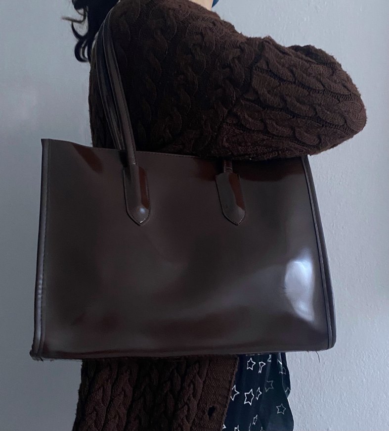Kahverengi deri, tokalı ve desen içermeyen bu çanta, klasik goth tarzıyla günlük kullanıma uygundur. Derisi parlaktır. Yeni gibi tertemiz bir çanta. Çok çantam olduğu için uygun fiyata satıyorum.