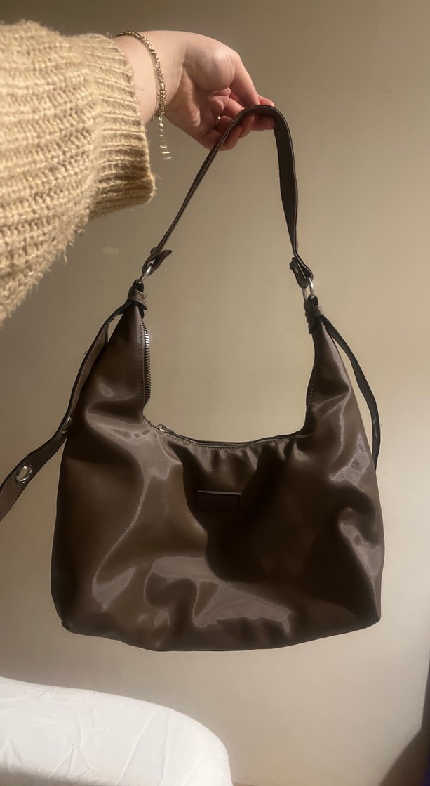 Kahverengi deri, tokalı askılı, desen içermeyen, Paris sokak tarzından esinlenen kadın omuz çantası.