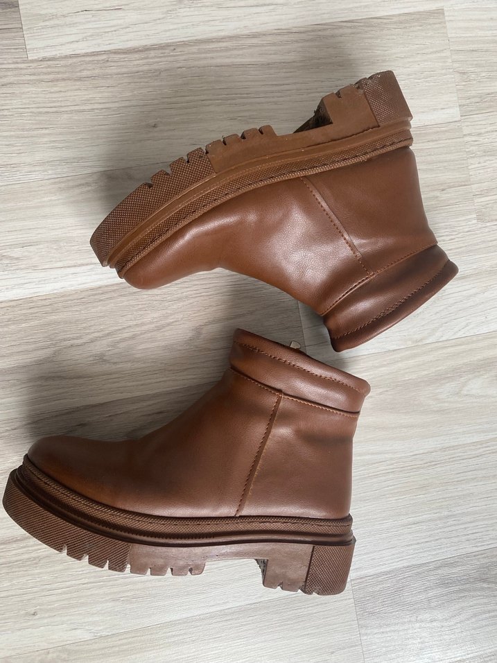 Kahverengi Deri Kadın Platform Topuklu Bot