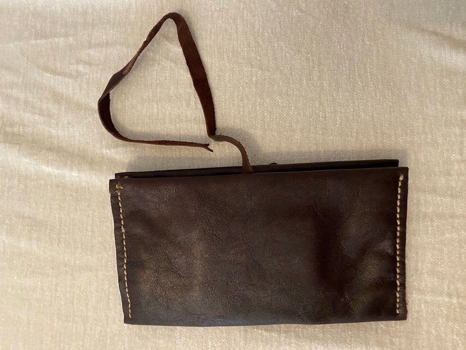 Koyu kahverengi deri portföy çanta, tokalı askıya ve desen içermeyen minimalist tasarıma sahiptir, günlük kullanım için uygundur. Ablam venedikten getirdi. El yapımı özel gerçek deridir. Başka çeşitleri de var. Evde fazlalık yapmasın diye satıyorum.