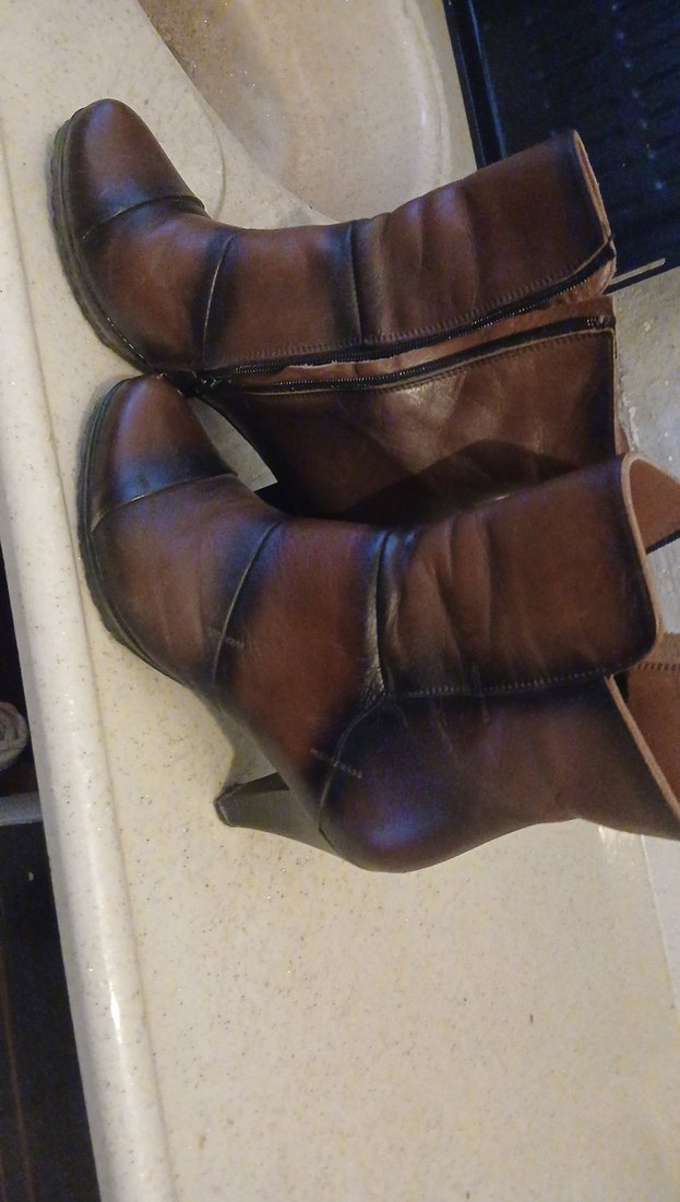 Kahverengi deriden imal edilmiş, tokalı ve ince stiletto topuklu kadın botları, vintage ve karşı kültür tarzını yansıtır, günlük kullanıma uygundur.