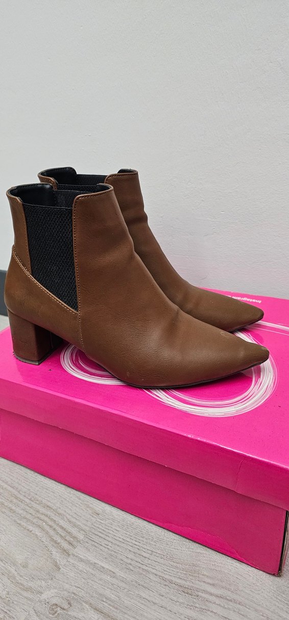 Kahverengi deri kadın botlar, blok topuklu, günlük kullanıma uygun modern ve zahmetsiz şıklık sağlar. Koyu renk, desensiz tasarım Paris tarzına uygundur.