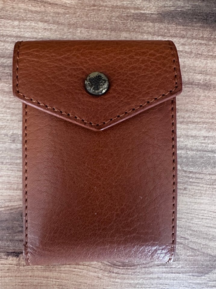 Kahverengi deri, tokalı kapaklı vintage tarzda kartlık.Klasik ve desensiz tasarımıyla günlük kullanım için uygundur. Tokasında kararma var. 20 kart rahat alıyor. Astarda deride plastiklerde hiçbir sorun yok.