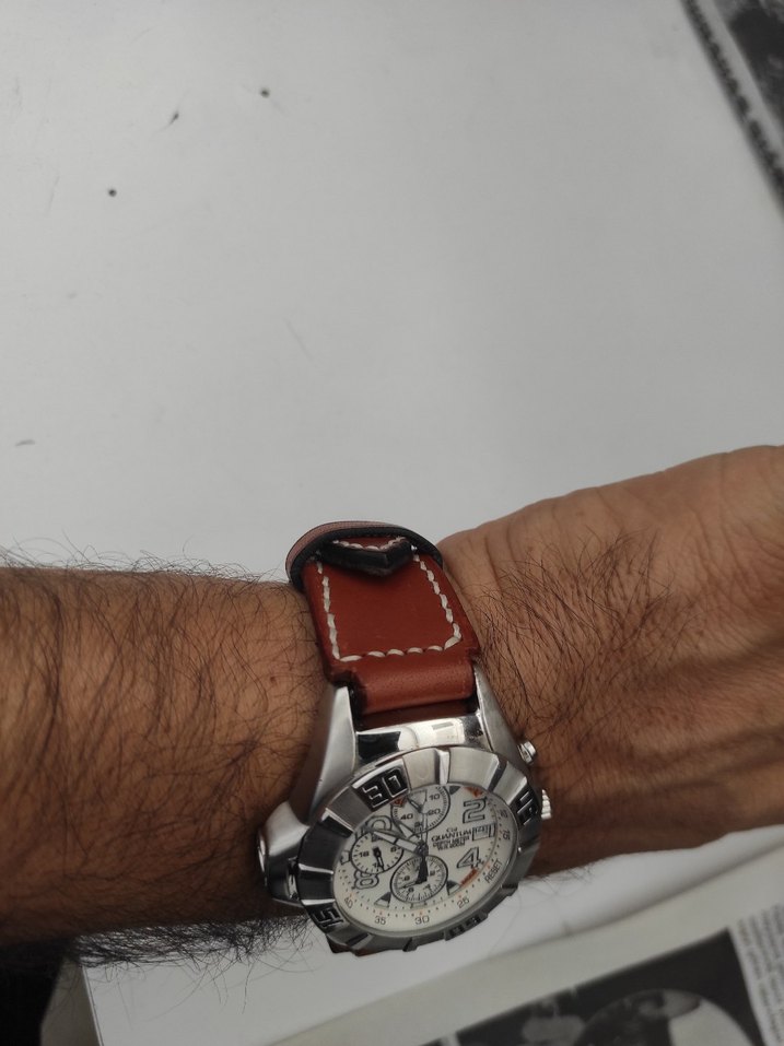 Hakiki deri el yapımı beyaz dikiş detaylı kahverengi erkek saat kordonu