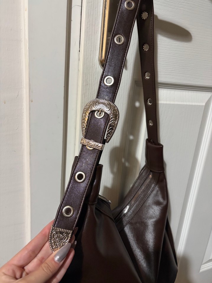 Kahverengi Deri Kemer Tokalı Çanta