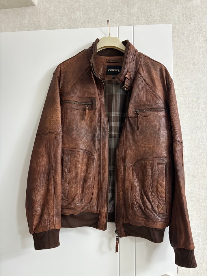 Kahverengi deri, kemerli erkek ceket. Notch yakalı, regular fit ve uzun kolludur. Çoklu fermuarlı cepleri bulunur. Günlük rahat kullanım için uygundur. En son Görsel aynı değildir benzeridir