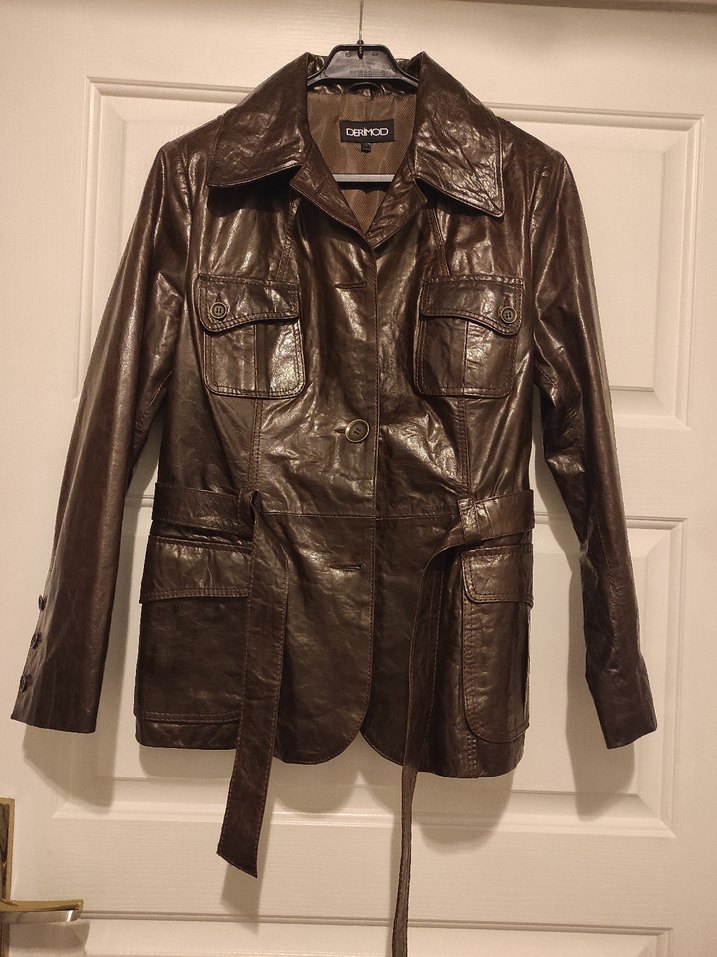 Kahverengi Deri Kemerli Kadın Ceket