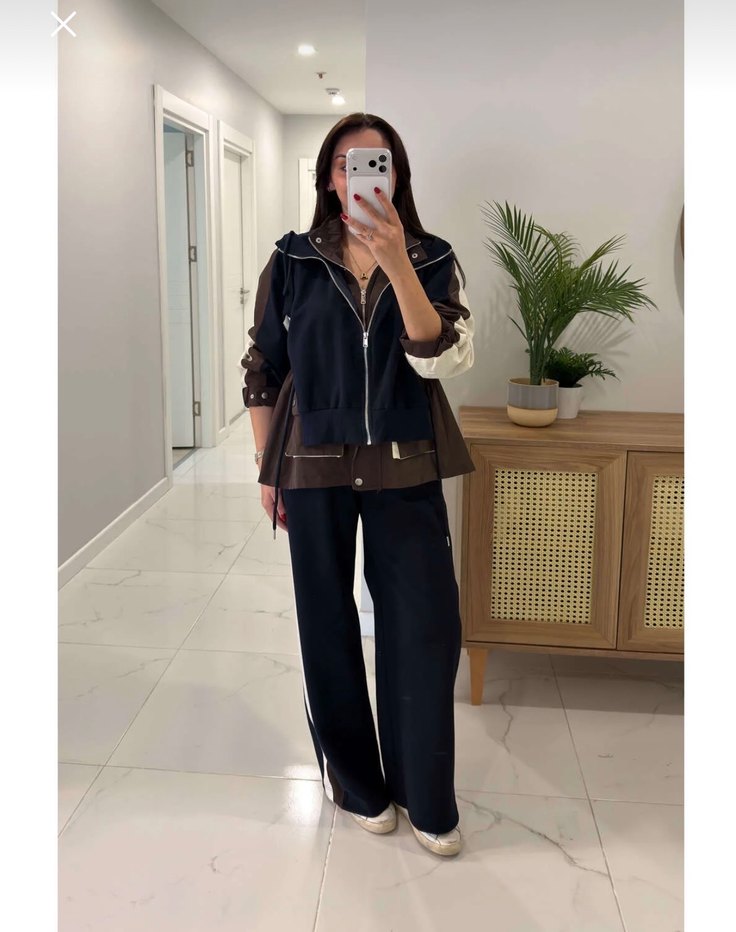 Kahverengi Deri Kemerli Kadın Eşofman Takımı
