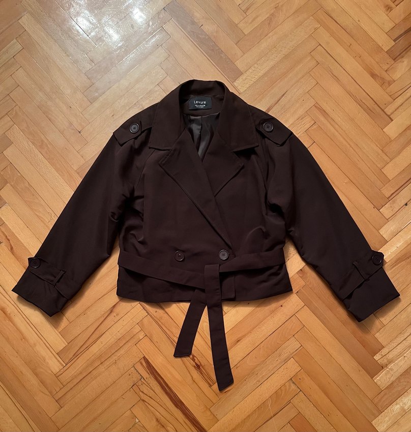 Kahverengi deri trençkot, kesik yakalı, uzun kollu ve kemerli bel detayına sahiptir. Normal kesim ve midi boydadır, ofis ve günlük kullanıma uygundur.