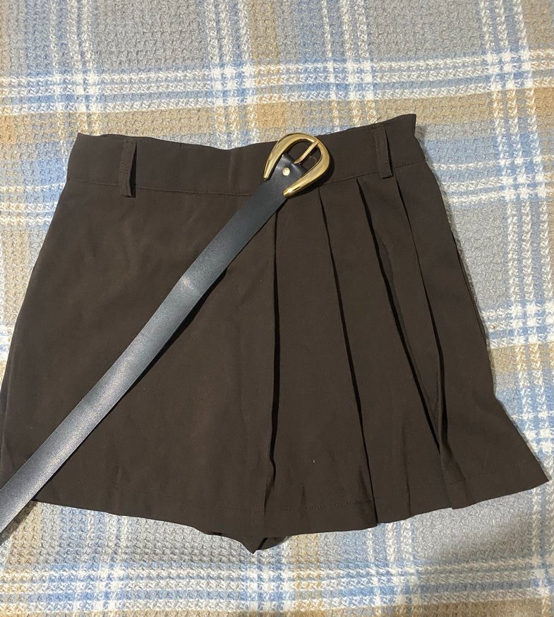 Kahverengi Deri Kemerli Mini Etek şortlu