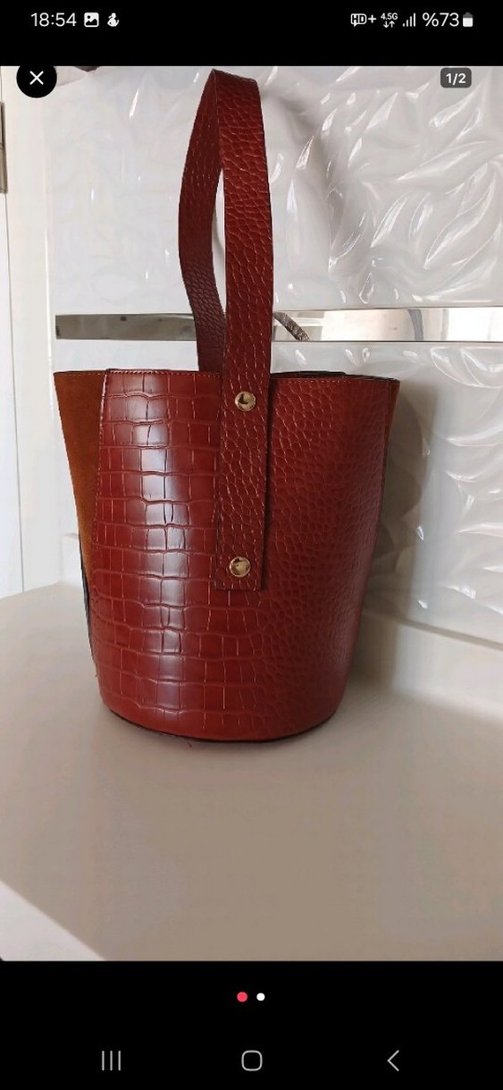 Kahverengi deri kemerli, koyu yılan desenli çanta, çağdaş stil ve Paris esintisi sunar.