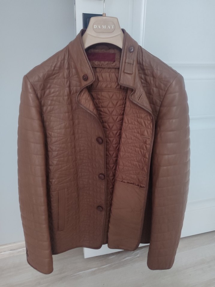 kahverengi deri ceket, çıtçıtlı yakası ve düğmeli önü ile dikkat çeker. Regular fit, uzun kollu ve parlak görünüme sahiptir. Markası Giovane genelde sıfırı 40000 civarıdır. sayfaya attığım her ürün orjinaldir