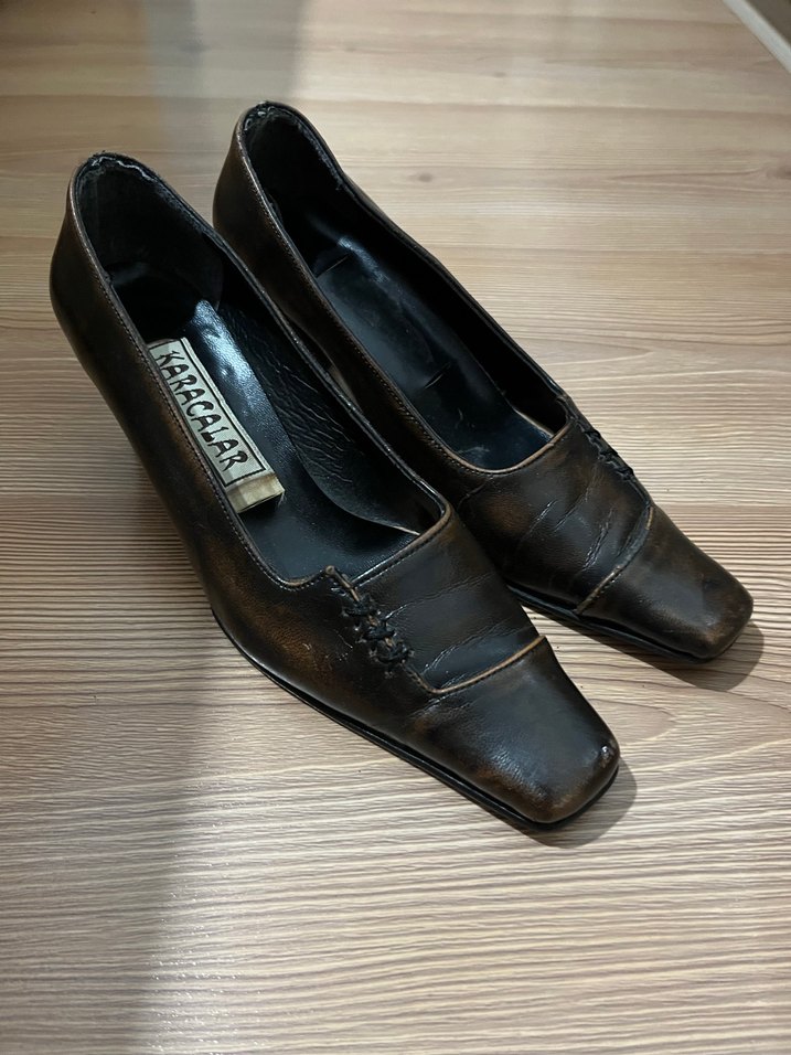 Kahverengi Deri Klasik Kadın Topuklu Ayakkabı