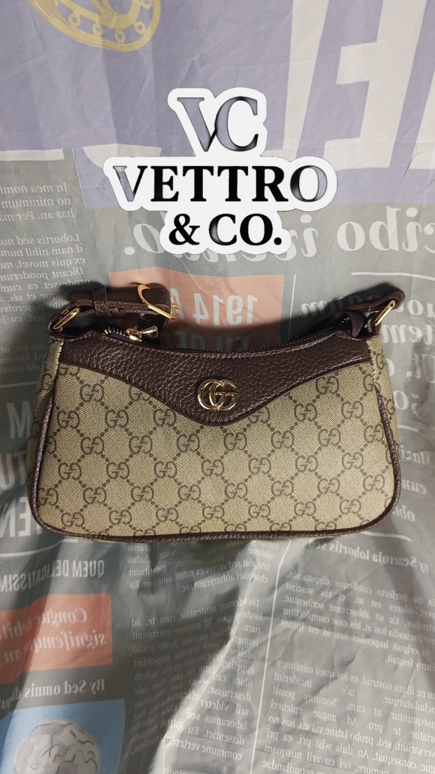 Kahverengi deri kadın çanta, baskılı desen ve tokalı detaylarla klasik şıklık ve sokak stiline uygun. Gucci markası şıklık katıyor. (muadıl)