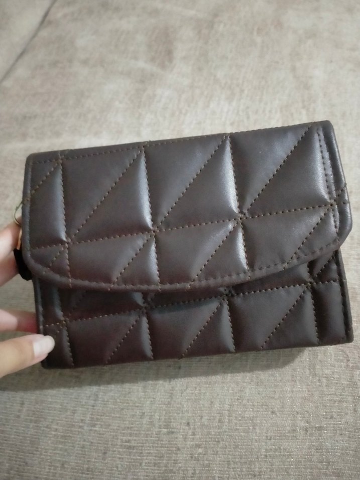 Koyu kahverengi deri kol çantası ile sade ve desensiz tasarıma sahiptir. Günlük sokak stiline uygundur.