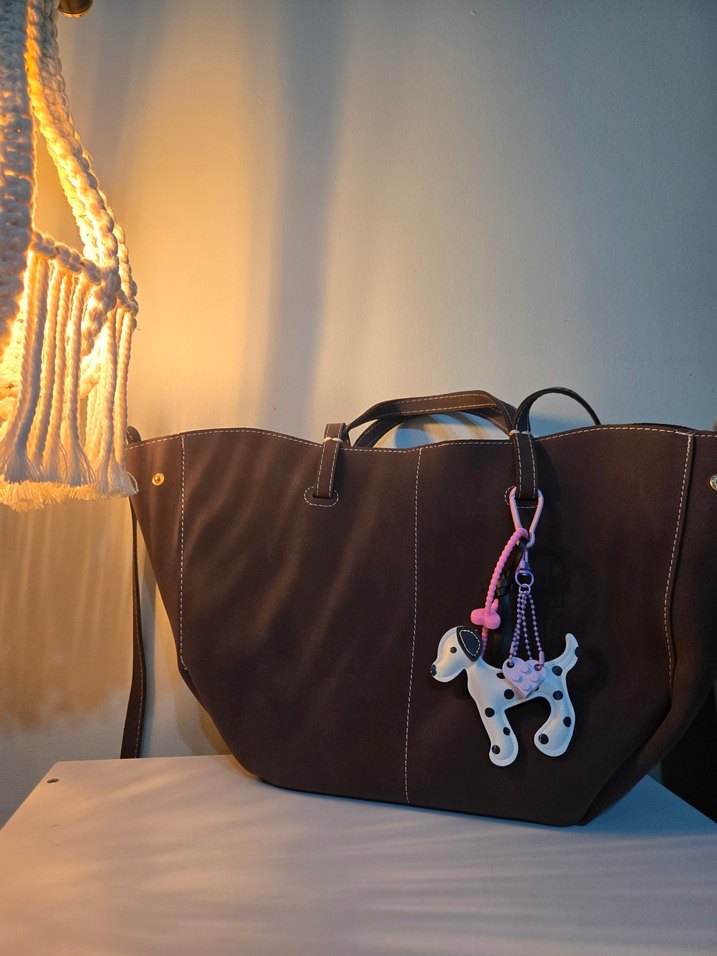 Kahverengi deri, tokalı ve leopar desenli kadın çantası. Günlük kullanıma uygun, trend sokak stiliyle uyumlu.
