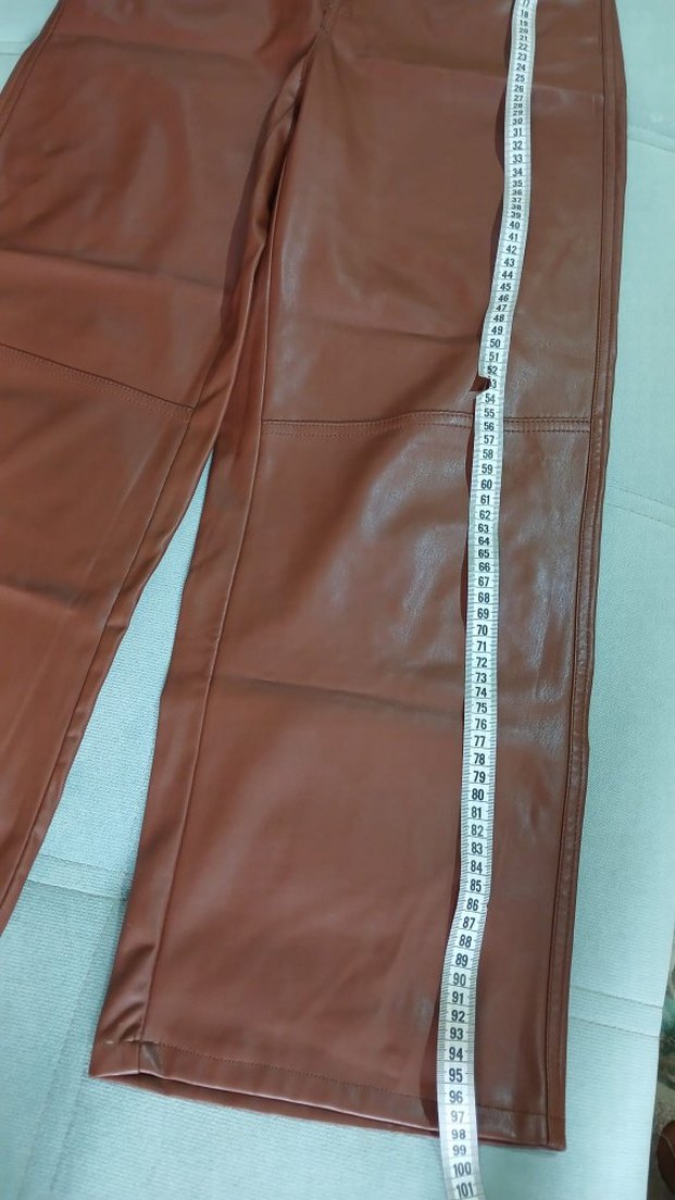 Kadınlar için kahverengi parlak deri midi pantolon, regular fit ve kemerli, sokak stili için uygun. ✨ BERSHKA MARKA DERİ KAHVERENGİ RENGİNDE PANTOLON.
