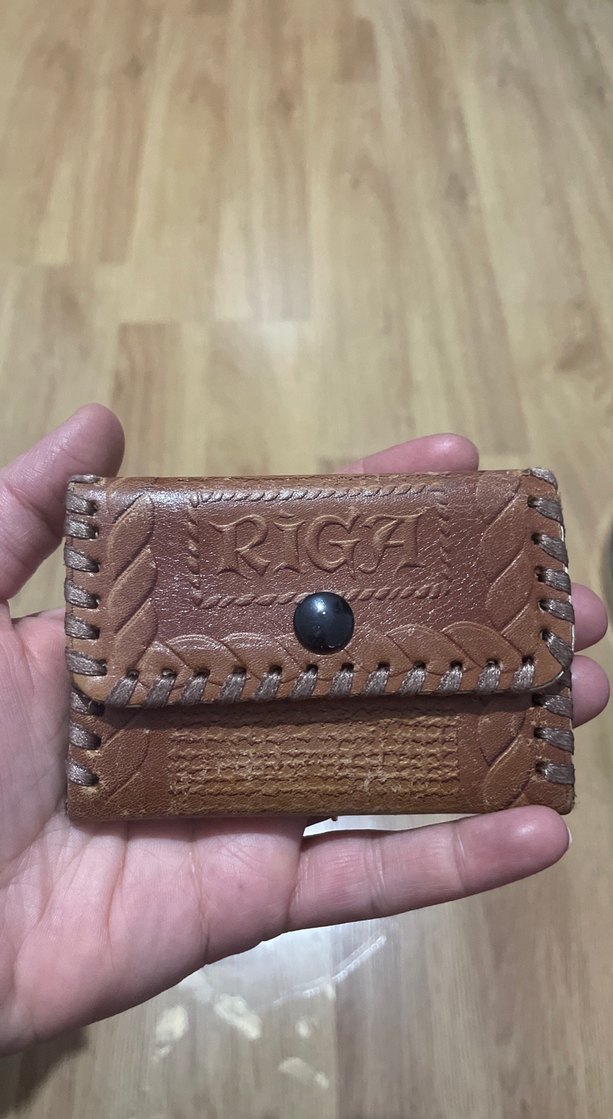 Nakışlı detaylara ve tokalı kapanışa sahip kahverengi deri cüzdan, vintage bohem tarzını günlük kullanım için yansıtıyor.