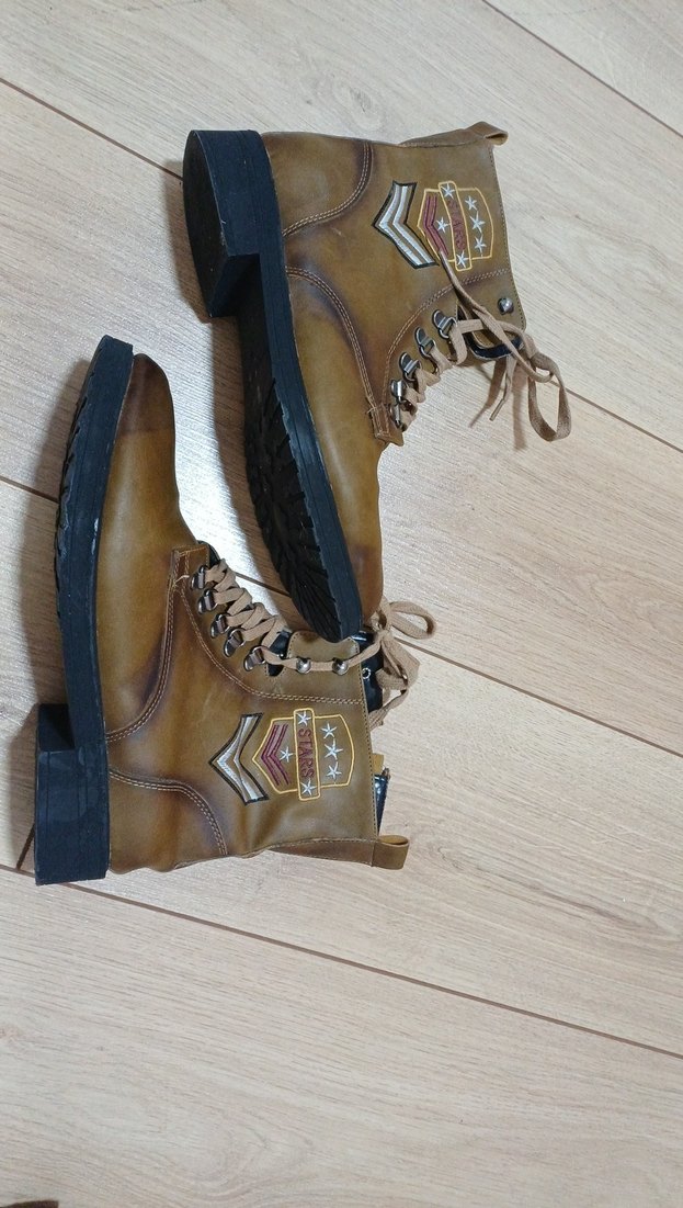 Kahverengi deri, tokalı kadın botları, blok topuklu ve nakışlı desenlerle rock punk sokak tarzı sunar. Sadece 2 3 defa kullanildi cok temiz.