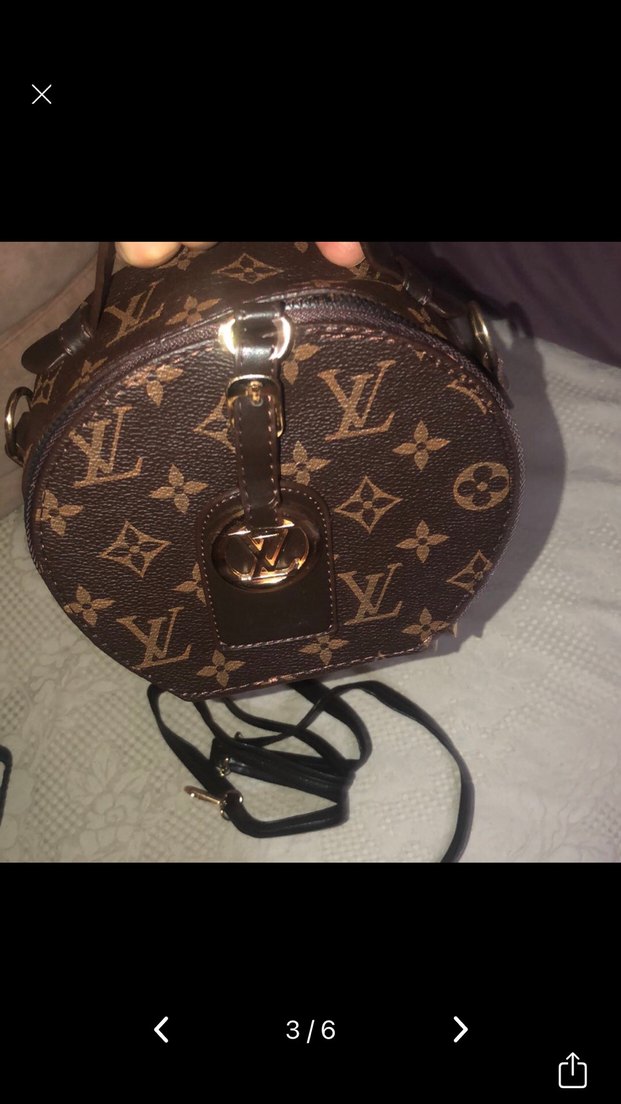 Kaliteli kahverengi deri çanta, Louis Vuitton desenli ve tokalı detaylara sahip, klasik sokak stiline uygun.