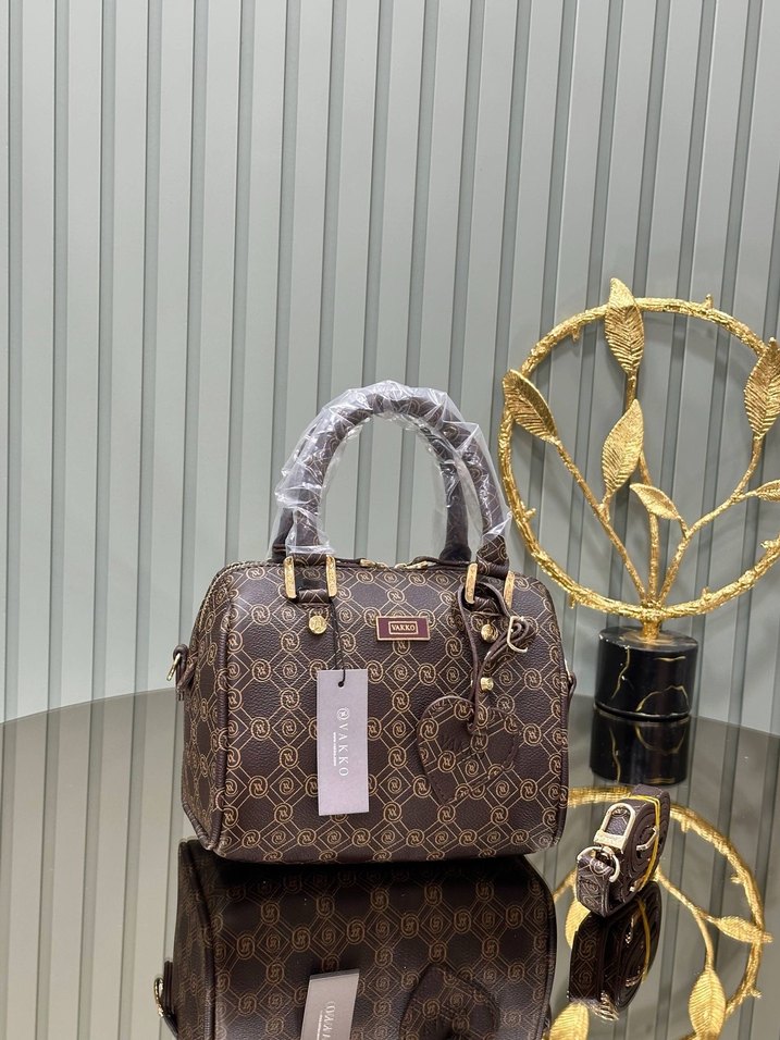 Kahverengi Deri Parlak Yılan Desenli Kadın Çanta