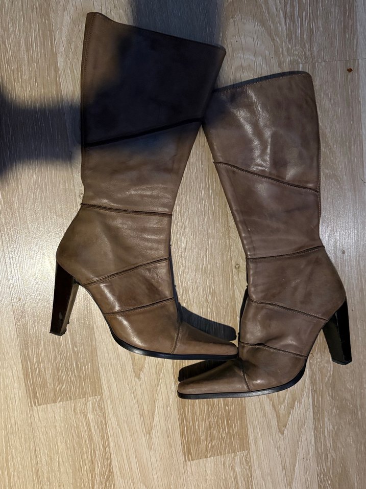 Kahverengi Deri Stiletto Dizüstü Kadın Çizme