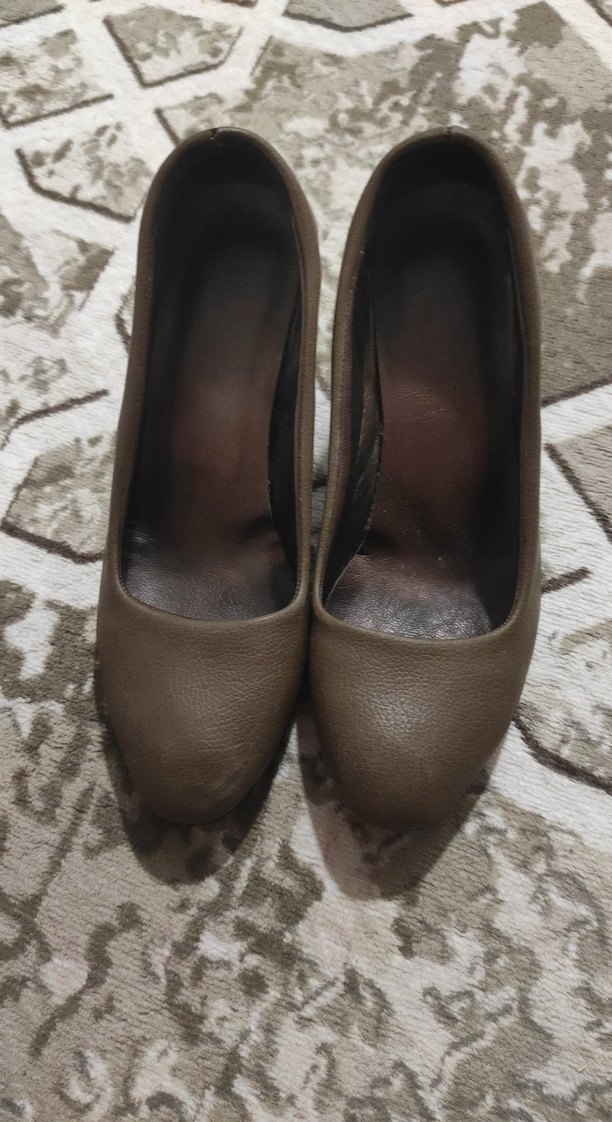 Kahverengi Deri Stiletto Topuklu Kadın Ayakkabı