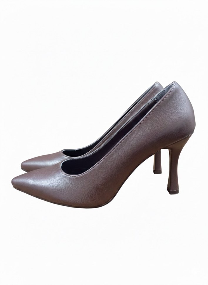Kahverengi Deri Stiletto Topuklu Kadın Ayakkabı