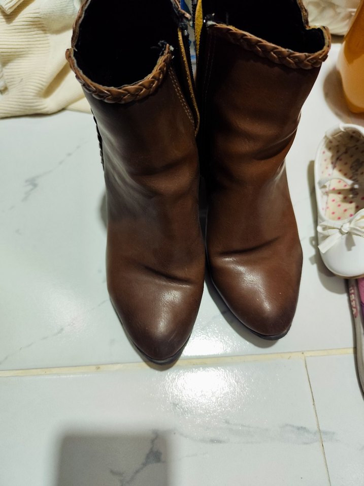 Kahverengi Deri Stiletto Topuklu Kadın Bot