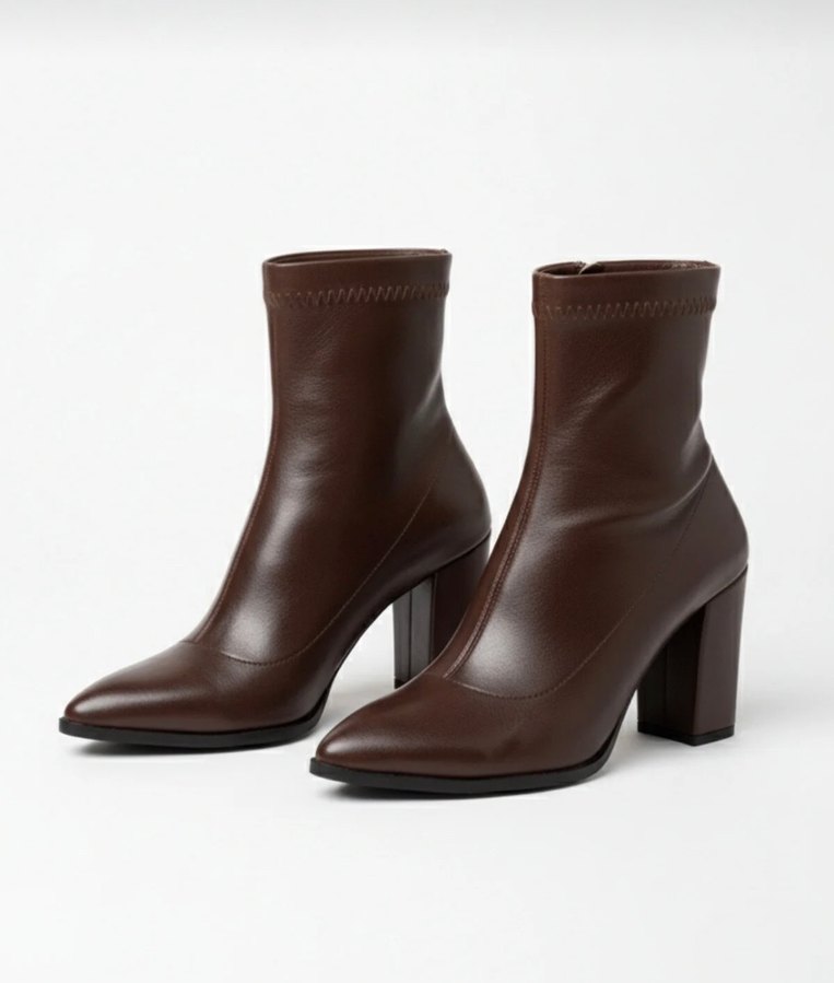 Kahverengi Deri Stiletto Topuklu Kadın Bot
