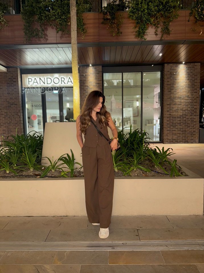 Kahverengi Deri Straplez Kadın Tulum