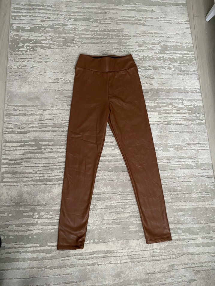 Kahverengi deri tayt, kemerli ve midi boyda, rahat ve şık sokak tarzı için uygun. Yeni etiketsiz marka temsili