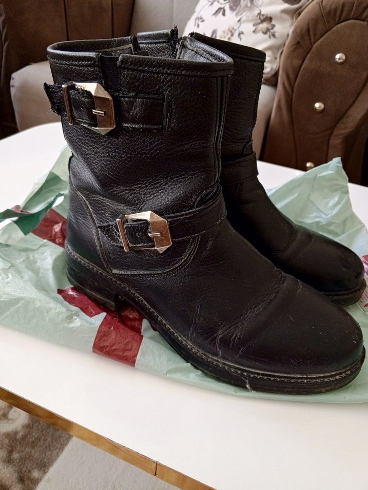 Kahverengi deri tokalı biker bayan botları, vintage tarzıyla günlük kullanıma uygundur. Desensiz ve dayanıklı yapıya sahiptir. kullanıma engel sorunu yok temiz görüldüğü gibi