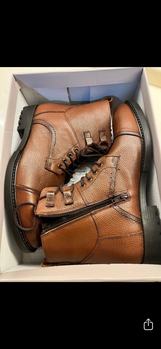 Parlak kahverengi deriden yapılmış, tokalı ve fermuarlı biker erkek botları. Günlük kullanıma uygun klasik tarzda. 42 numara sıfır ürün