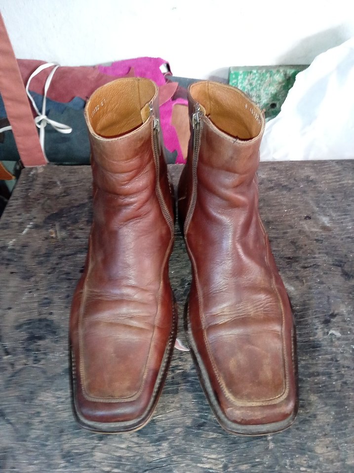 Kahverengi deri tokalı erkek botları, vintage karşı kültür tarzında. Desensiz ve renkli dokunuşlarıyla günlük kullanıma uygun. iade kabul etmiyorum. fiyatta yardımcı olurum.