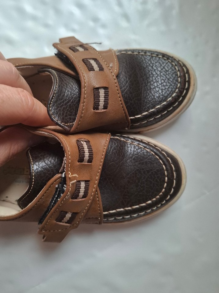 Koyu kahverengi deri erkek çocuk loafer ayakkabı, tokalı kayış ve beyaz dikiş detaylarına sahip, rahat sokak stili için uygun. Klasik erkek çocuk ayakkabısı şirinbebe marka hakiki deri